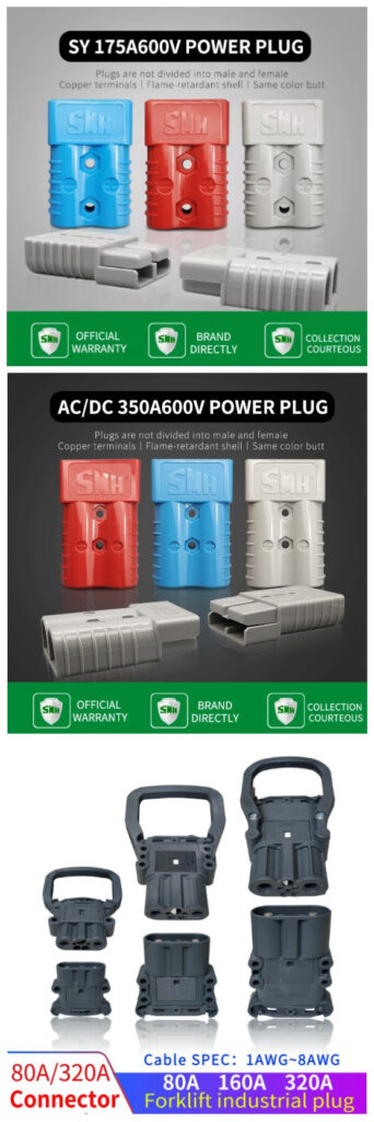 Below are recommended SMH battery connectors and plugs used for forklift batteries